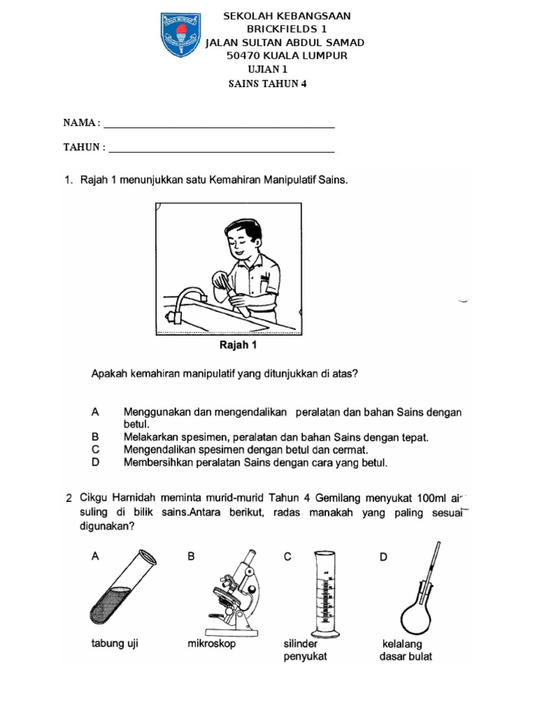 Ujian Sains Tahun 2 : Guru boleh mengikut format upsr sebenar untuk membuat soalah sains tahun 5 ini.. Dskp kssr semakan 2017 sains tahun 2 sjkc scribd com. Persiapan dalam menghadapi ujian sekolah sd mi tahun 2020 perlu segera dilakukan oleh peserta didik. Soalan soalan peperiksaan pertengahan tahun tahun 4 1. Apakah kemahiran manipulatif sains yang dilakukan oleh kedua murid tersebut? Kesiapan belajar menjadi hal yang penting soal ujian sekolah dapat dibagi dalam dua bentuk, yaitu pilihan ganda dan uraian.